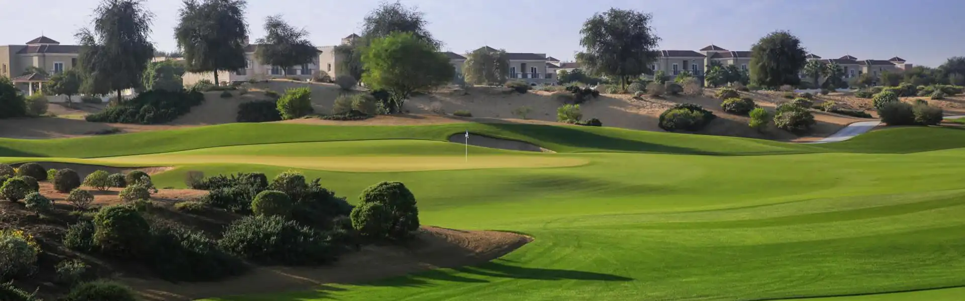 The Els Club is an 18-hole, 72 Par golf course located in the popular Dubai Sports City. By incorporating the desert landscape into the links course, Ernie Els designed this unique superb golf course. This links course was quickly awarded the “Best New International Course” by the prestigious Links Magazine. There are 4 tees and over 80 bunkers throughout the course, spanning a total distance of 6,892 meters.
